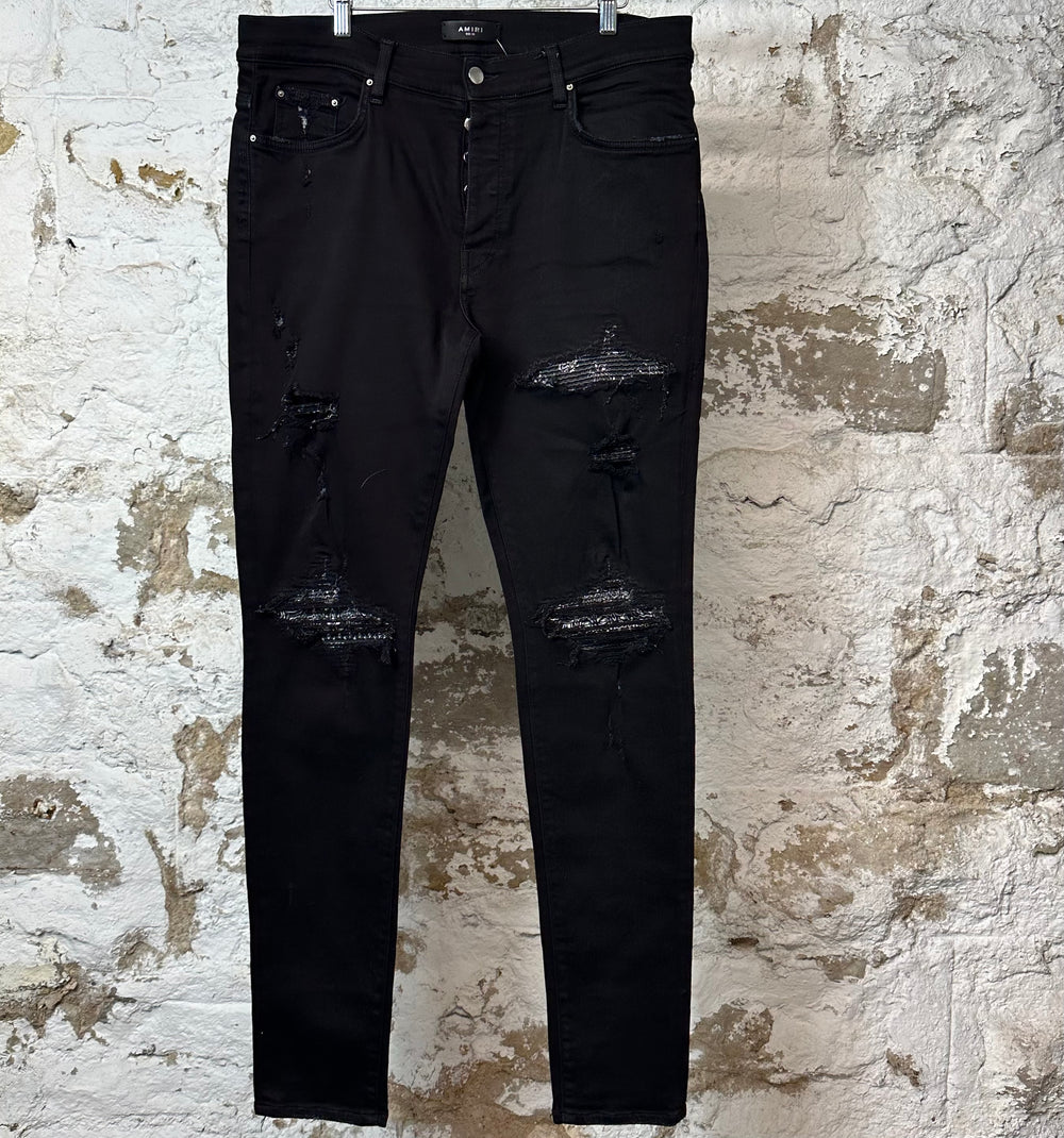 Amiri MX1 Grey Paisley Black Denim Jeans Sz 38